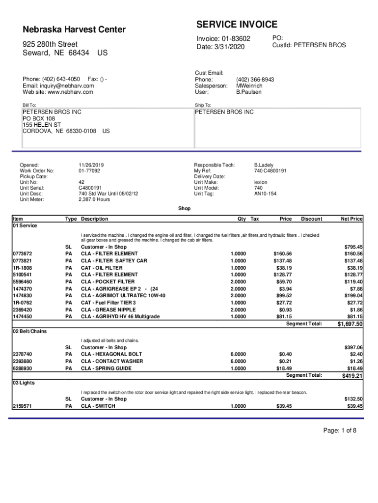 SERVICE INVOICE Nebraska Harvest Center