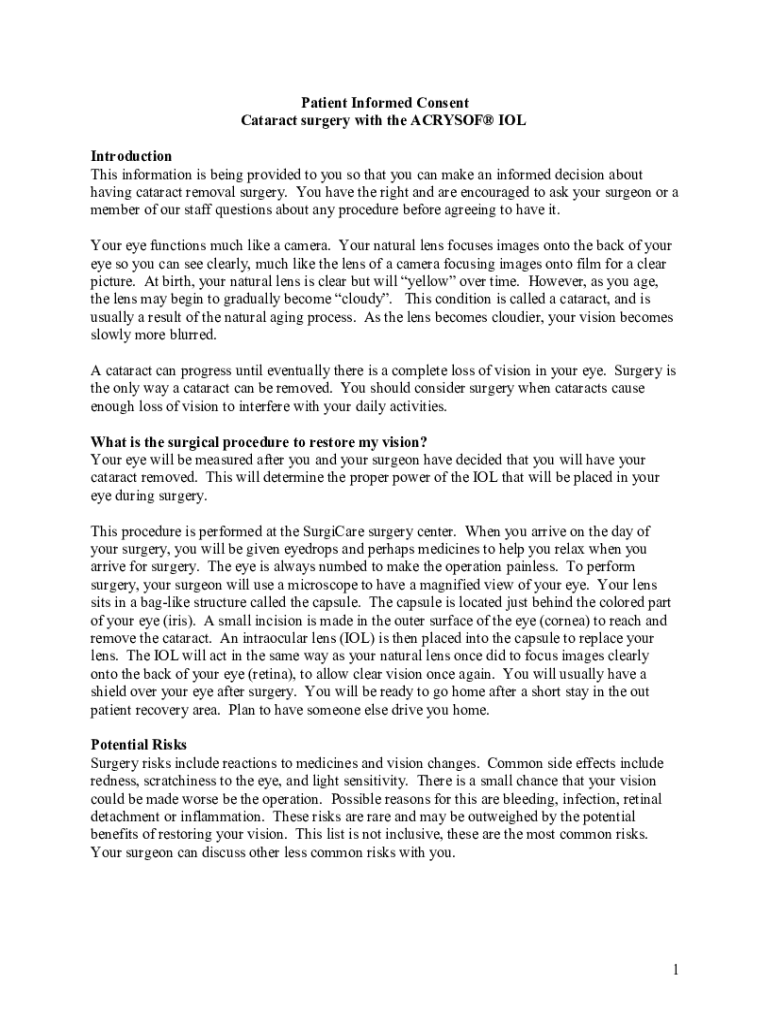 Get the free Patient Informed Consent Cataract Surgery with the ...