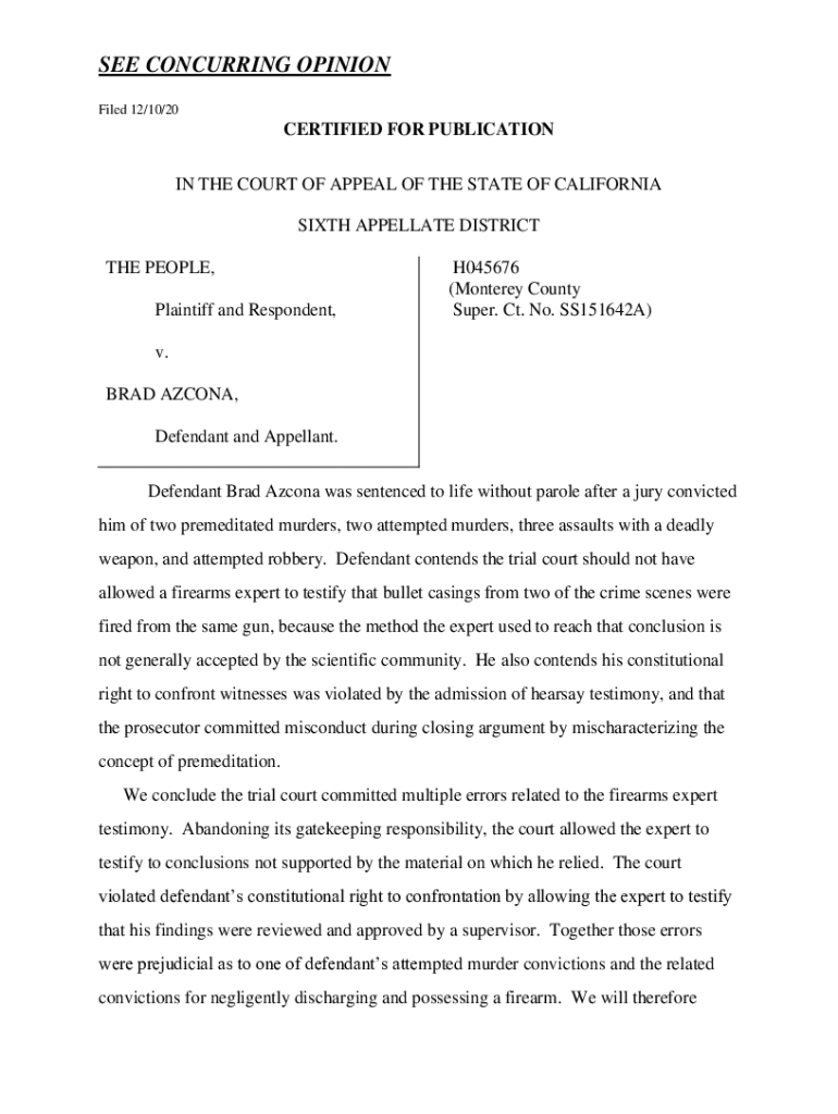 SEE CONCURRING OPINION Filed 12/10/20CERTIFIED FOR PUBLICATION IN THE COURT OF APPEAL OF THE STATE OF CALIFORNIA SIXTH APPELLATE DISTRICT THE PEOPLE, Plaintiff and Respondent,H045676 (Monterey County