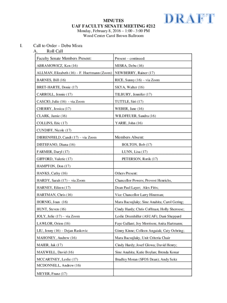 Faculty Senate Members Present:Present continued:ABRAMOWICZ,