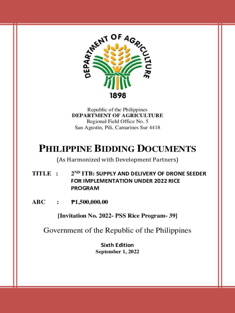 Republic of the Philippines DEPARTMENT OF AGRICULTURE Regional Field Office No. 5 San Agustin, Pile, Ca marines SUR 4418PHILIPPINE BIDDING DOCUMENTS (As Harmonized with Development Partners)TITLE