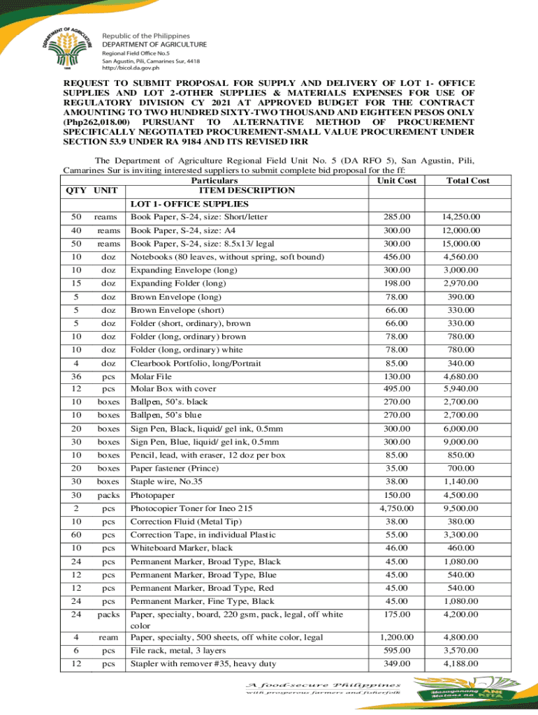 Get the free REQUEST FOR PROPOSAL PREFERRED SUPPLIER of ... - bicol da gov