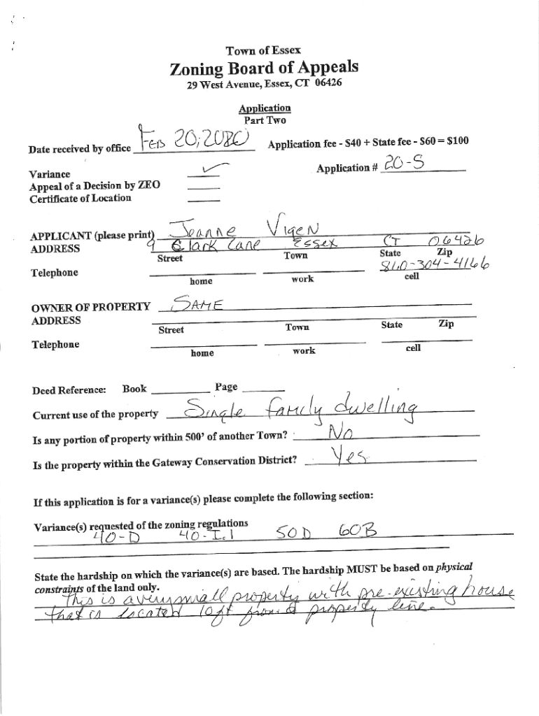 Get the free Zoning Board of Appeals Application - East Windsor CT