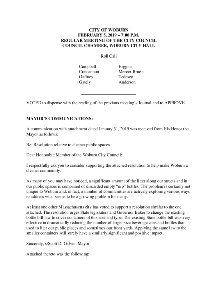 REGULAR MEETING OF THE CITY COUNCIL CHAMBER, WOBURN CITY HALL