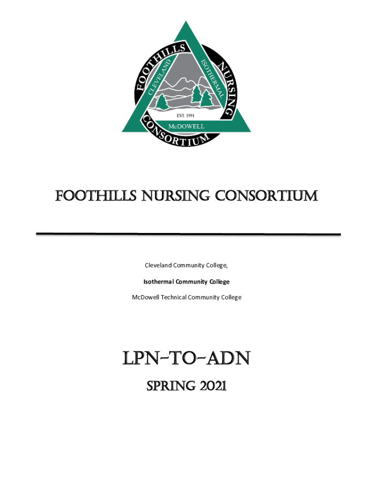 Foothills Nursing Consortium Cleveland Community College, Geothermal Community College McDowell Technical Community CollegeLpntoADN Spring 2021FOOTHILLS NURSING CONSORTIUM LINTON APPLICATION for ADMISSION