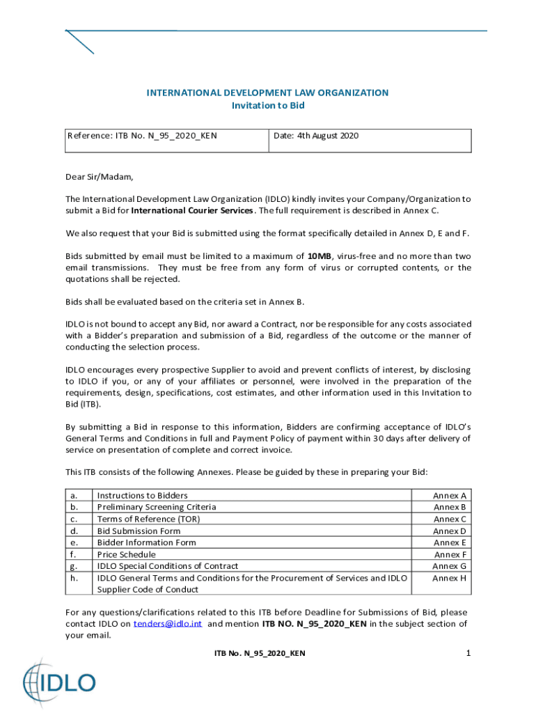 Get the free Invitation to Bid - International Development Law Organization