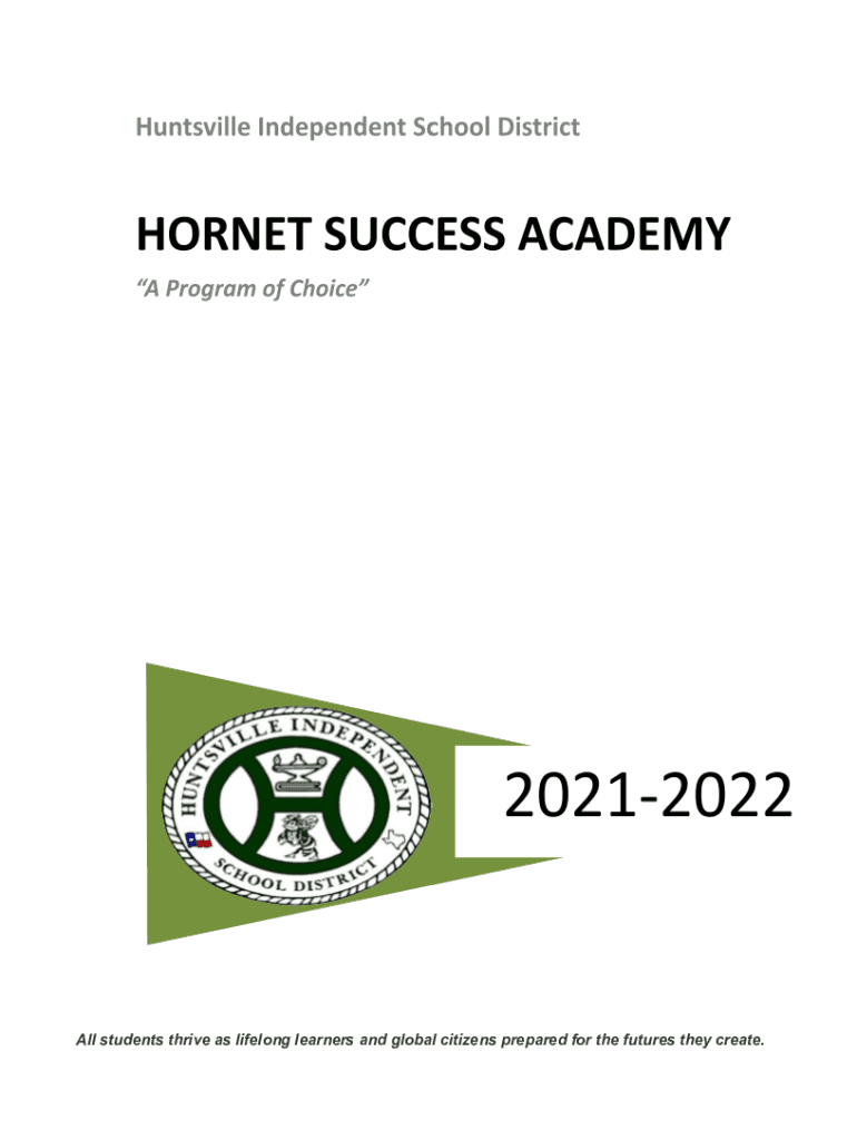 All students thrive as lifelong learners and global citizens prepared for the futures they create. Huntsville Independent School District provides the Hornet Success Academy program to Huntsville