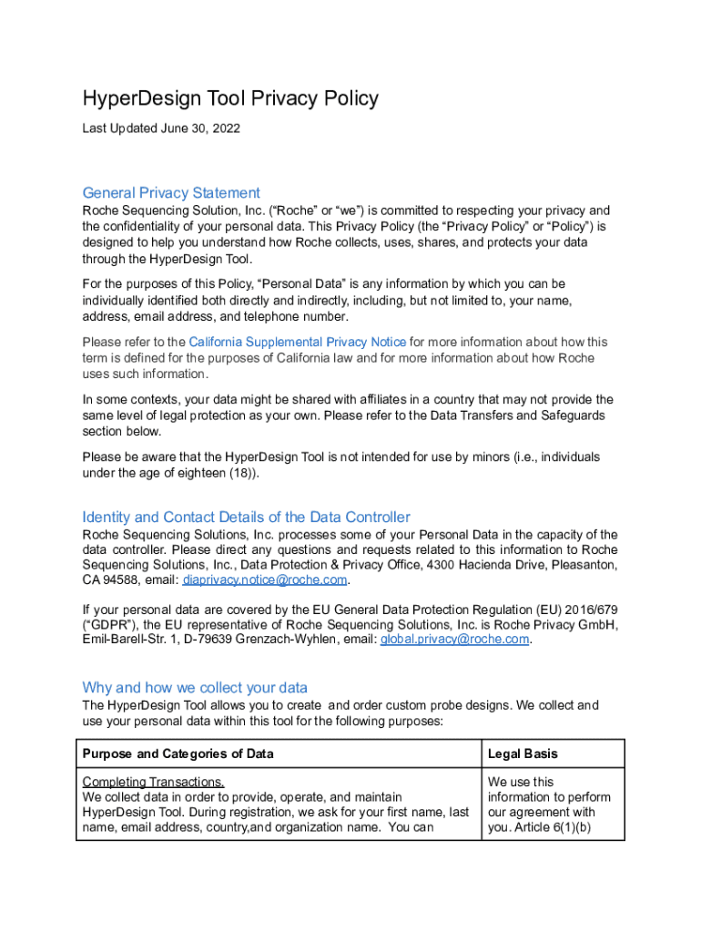 Hypertension Tool Privacy Policy Last Updated June 30, 2022General Privacy Statement Roche Sequencing Solution, Inc. (Roche or we) is committed to respecting your privacy and the confidentiality of