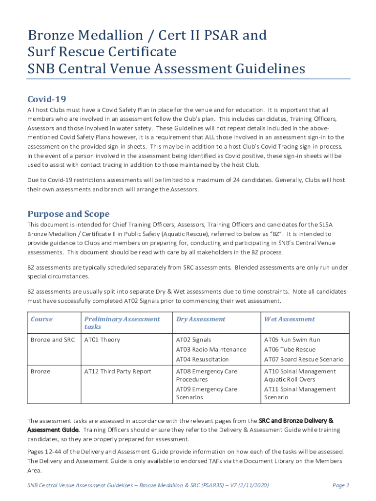 Bronze Medallion / Cert II PAR windsurf Rescue Certificate SNB Central Venue Assessment GuidelinesCovid19All host Clubs must have a COVID-19 Safety Plan in place for the venue and for education. It