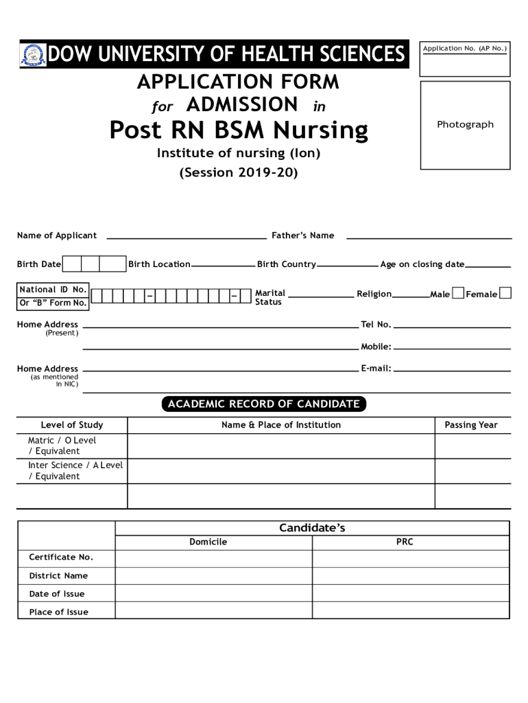 DOW UNIVERSITY OF HEALTH SCIENCESApplication No. (AP No.)APPLICATION FORM