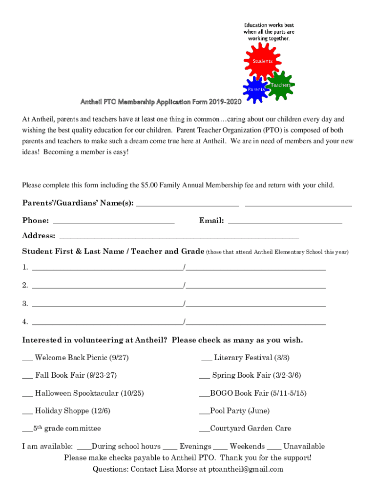 How to fill out antheil pto membership application