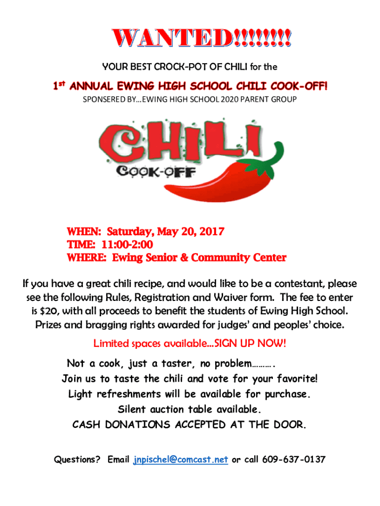 SPONSORED BREWING HIGH SCHOOL 2020 PARENT Groupie you have a great chili recipe, and would like to be a contestant, please