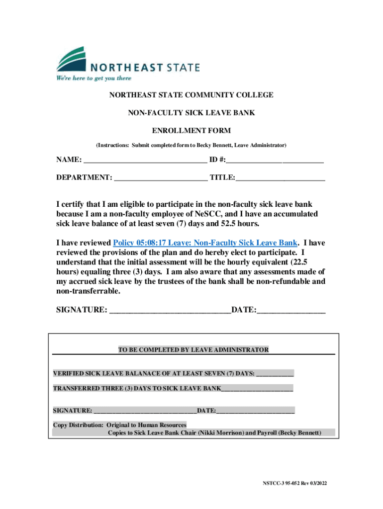 Get the free non-faculty sick leave bank enrollment form - Northeast State