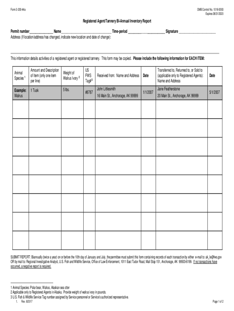 Form 320044aOMB Control No. 10180093 Expires 08/31/2020Registered Agent/Tannery Biannual Inventory Report Permit number___ Name___ Time period ___ Signature ___ Address (If location/address has changed,