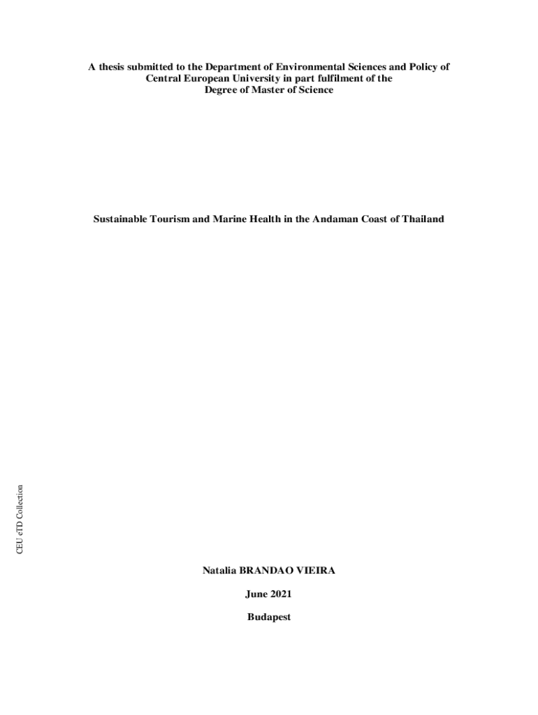 A thesis submitted to the Department of Environmental Sciences and Policy of Central European University in part fulfillment of the Degree of Master of Science CEU ETD CollectionSustainable Tourism