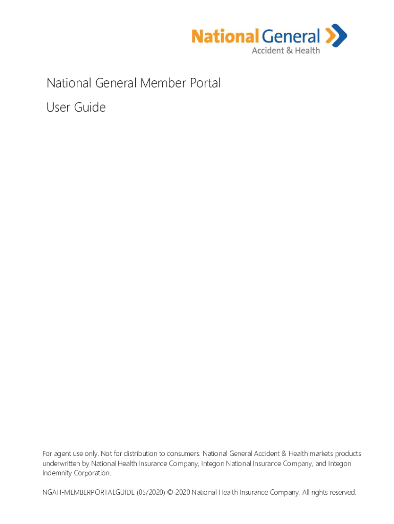 National General Member Portal User Guider agent use only. Not for distribution to consumers. National General Accident & Health markets products underwritten by National Health Insurance Company,