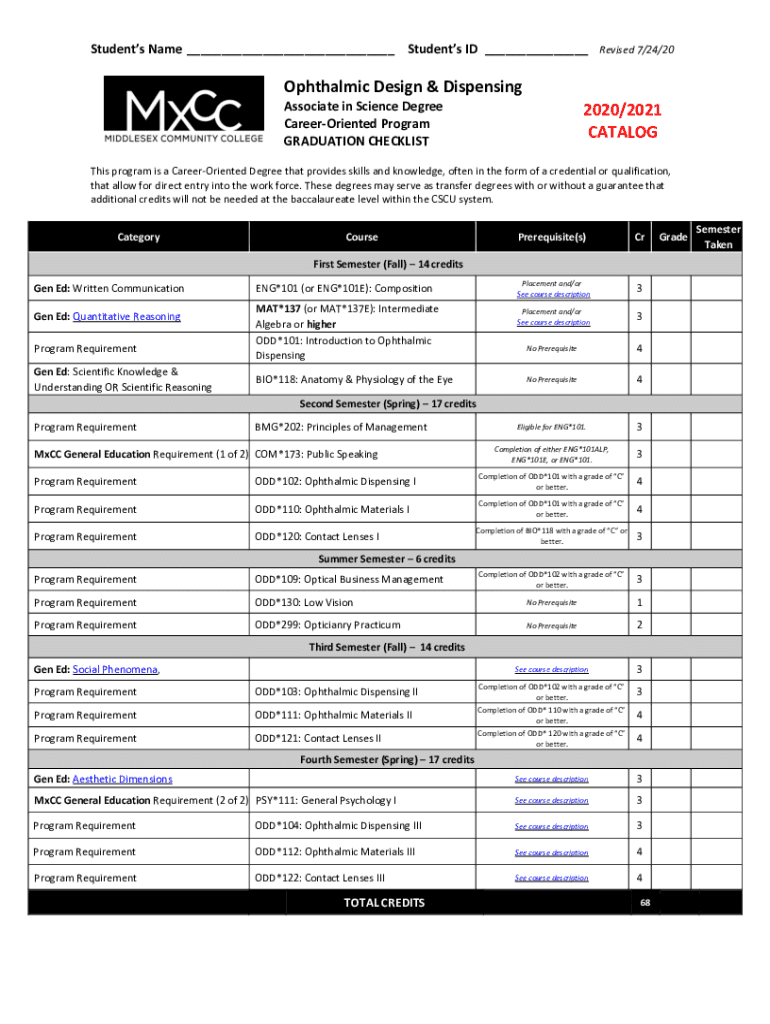 Students Name ___ Students ID ___ Revised 7/24/20Ophthalmic Design & Dispensing