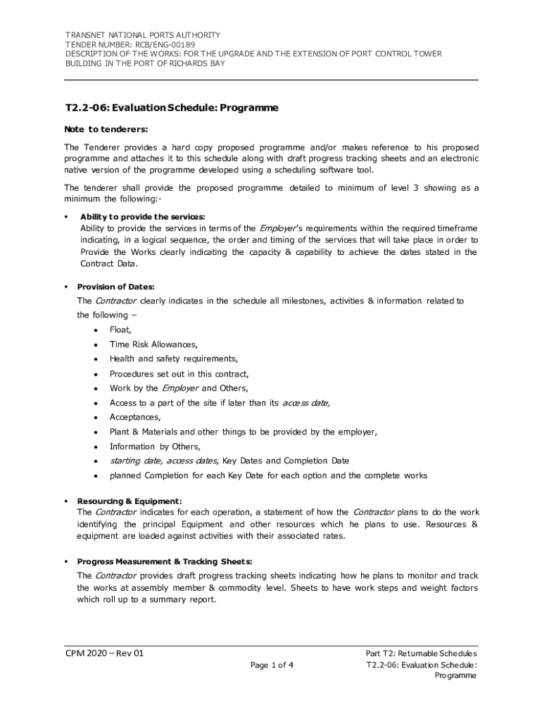 TRANSFER NATIONAL PORTS AUTHORITY TENDER NUMBER: RCB/ENG00189 DESCRIPTION OF THE WORKS: FOR THE UPGRADE AND THE EXTENSION OF PORT CONTROL TOWER BUILDING IN THE PORT OF RICHARDS BAYT2.206: Evaluation