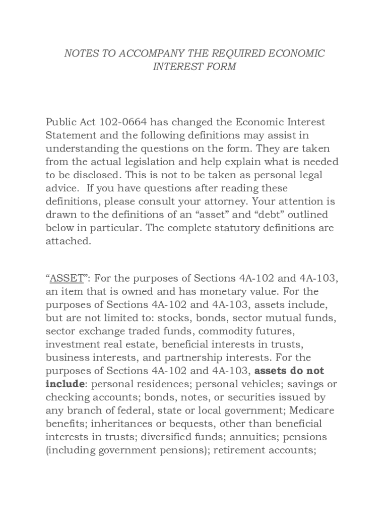 NOTES TO ACCOMPANY THE REQUIRED ECONOMIC INTEREST Republic Act 1020664 has changed the Economic Interest Statement and the following definitions may assist in understanding the questions on the form.