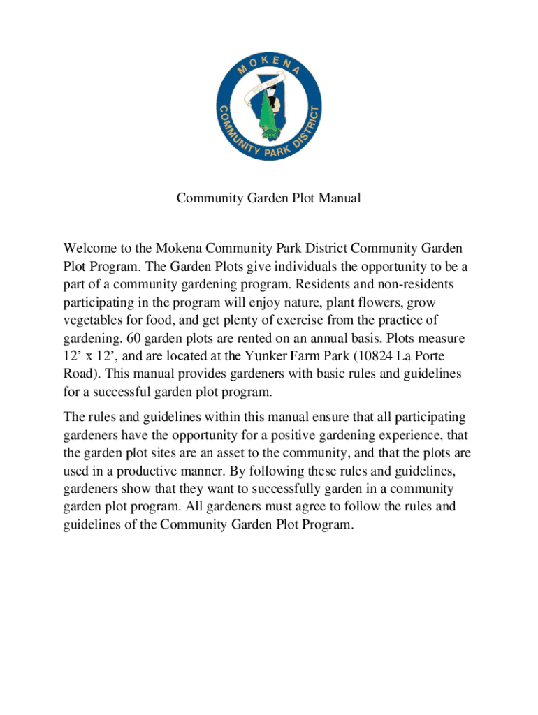 Community Garden Plot ManualWelcome to the Modena Community Park District Community Garden Plot Program. The Garden Plots give individuals the opportunity to be a part of a community gardening program.