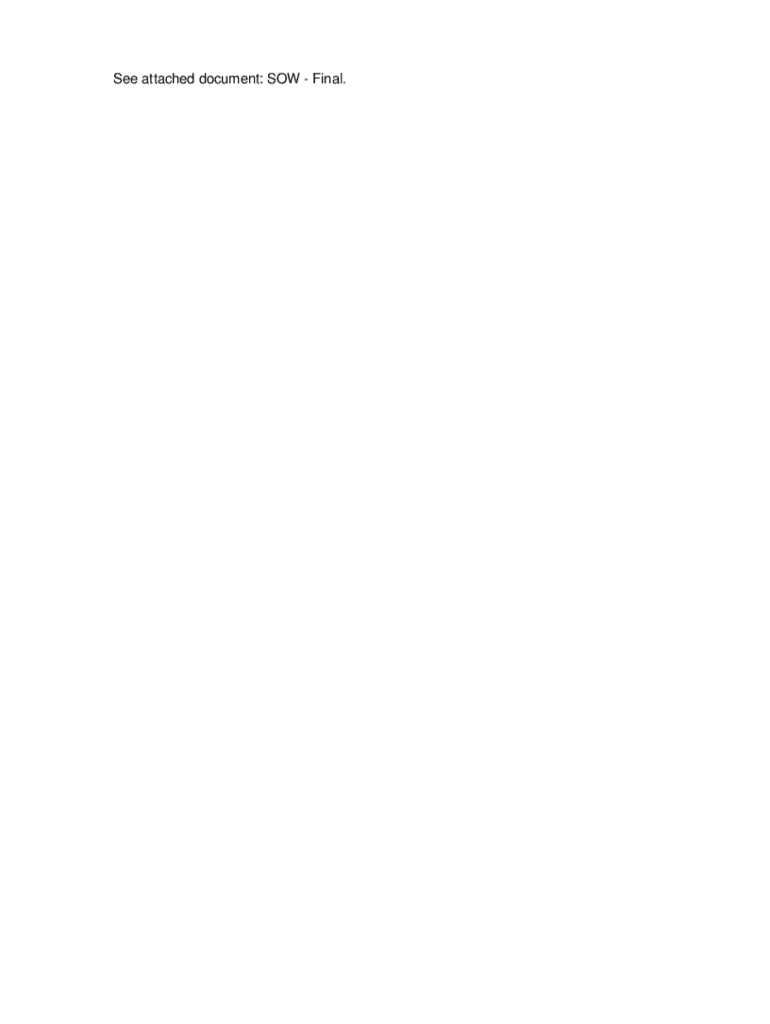 See attached document: SOW Final. BPA NO.AMENDMENT OF SOLICITATION/MODIFICATION OF CONTRACT 2. AMENDMENT/MODIFICATION NUMBER3. EFFECTIVE DATE1. CONTRACT ID CODEPAGE4. REQUISITION/PURCHASE REQ. NUMBERCODE6.