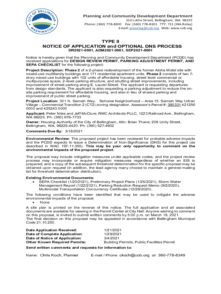 Planning and Community Development Department 210 Lottie Street, Bellingham, WA 98225 Phone: (360) 7788300 Fax: (360) 7788301 TTY: 711 (WA Relay) Email: planning@cob.org Web: www.cob.orgTYPE II NOTICE