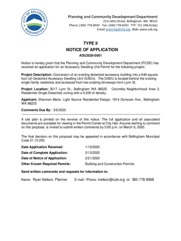 Get the free Notice of Application. ADU2020-0001
