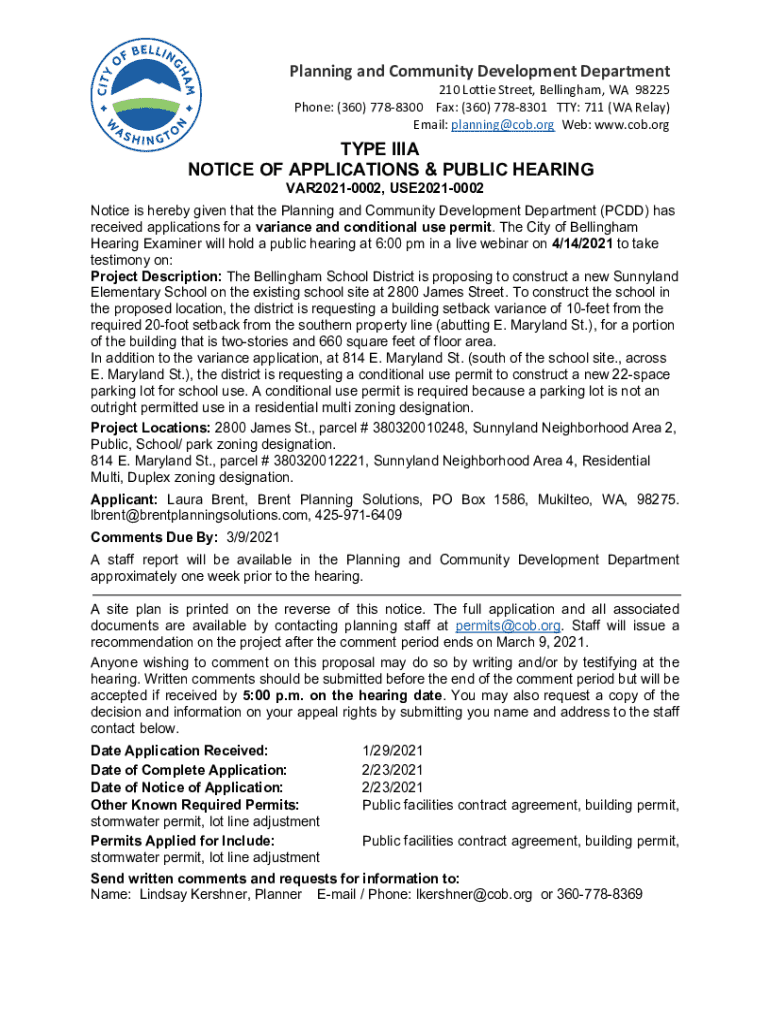 Planning and Community Development Department 210 Lottie Street, Bellingham, WA 98225 Phone: (360) 7788300 Fax: (360) 7788301 TTY: 711 (WA Relay) Email: planning@cob.org Web: www.cob.orgTYPE ILIA