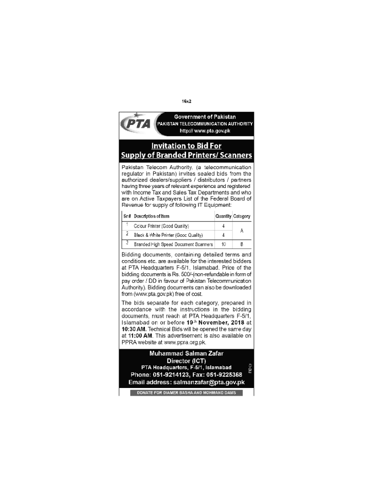 Government of PakistanPAKISTAN TELECOMMUNICATION AUTHORITY HEADQUARTERS F5/1, ISLAMABAD. HTTP// www.pta.gov.pk BIDDING DOCUMENTS Sealed bids are invited from well reputed authorized dealers/suppliers/distributors/partners
