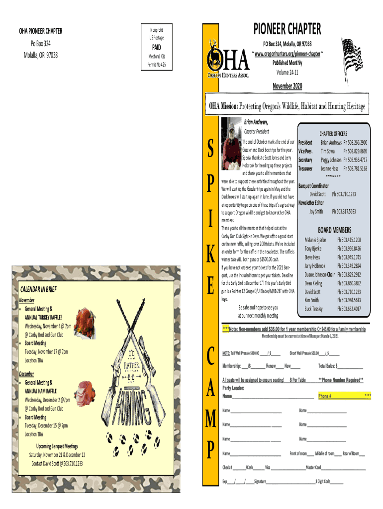 OHA PIONEER CHAPTER Po Box 324 Morally, OR 97038PIONEER CHAPTERNonprofit US Postage PO Box 324, Morally, OR 97038 www.oregonhunters.org/pioneerchapter Published Monthly Volume 2411PAID Medford, OR