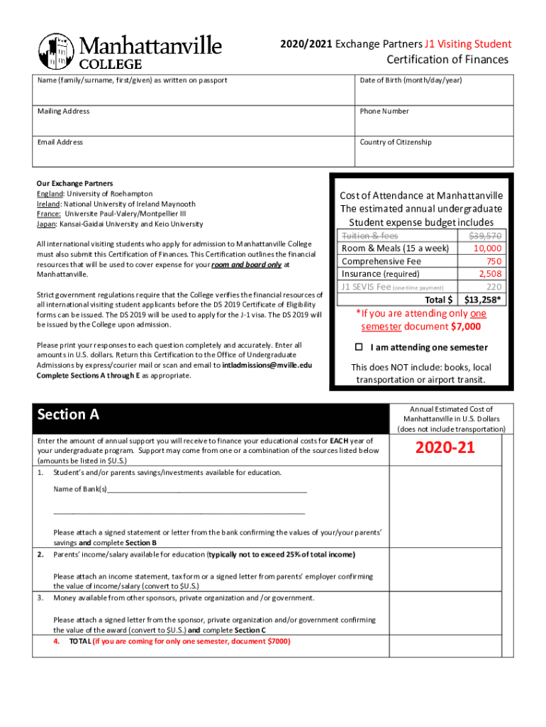 2020/2021ExchangePartnersJ1VisitingStudentCertificationofFinances