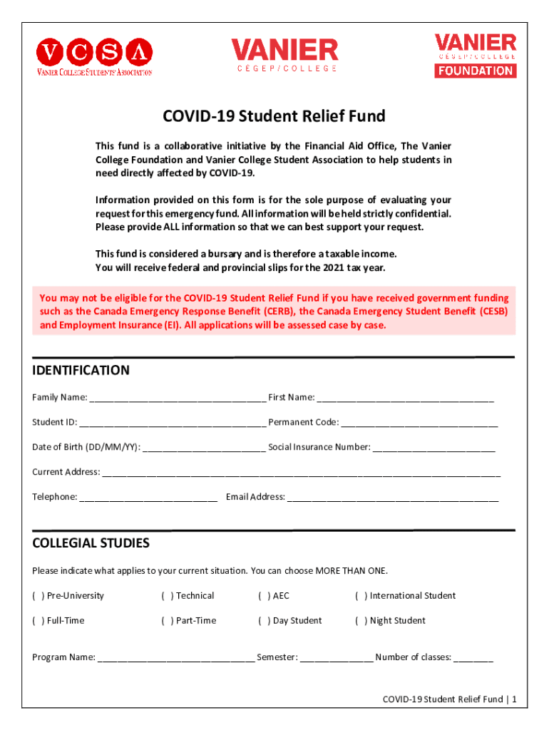 COVID-19 Student Relief Fund This fund is a collaborative initiative by the Financial Aid Office, The Zanier College Foundation and Zanier College Student Association to help students in need directly
