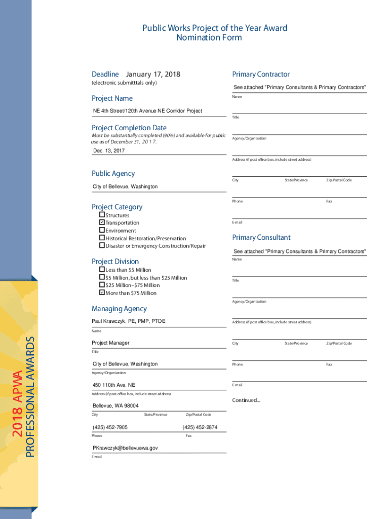 Get the free NE 4TH STREET / 120TH AVENUE NE CORRIDOR PROJECT - washington apwa