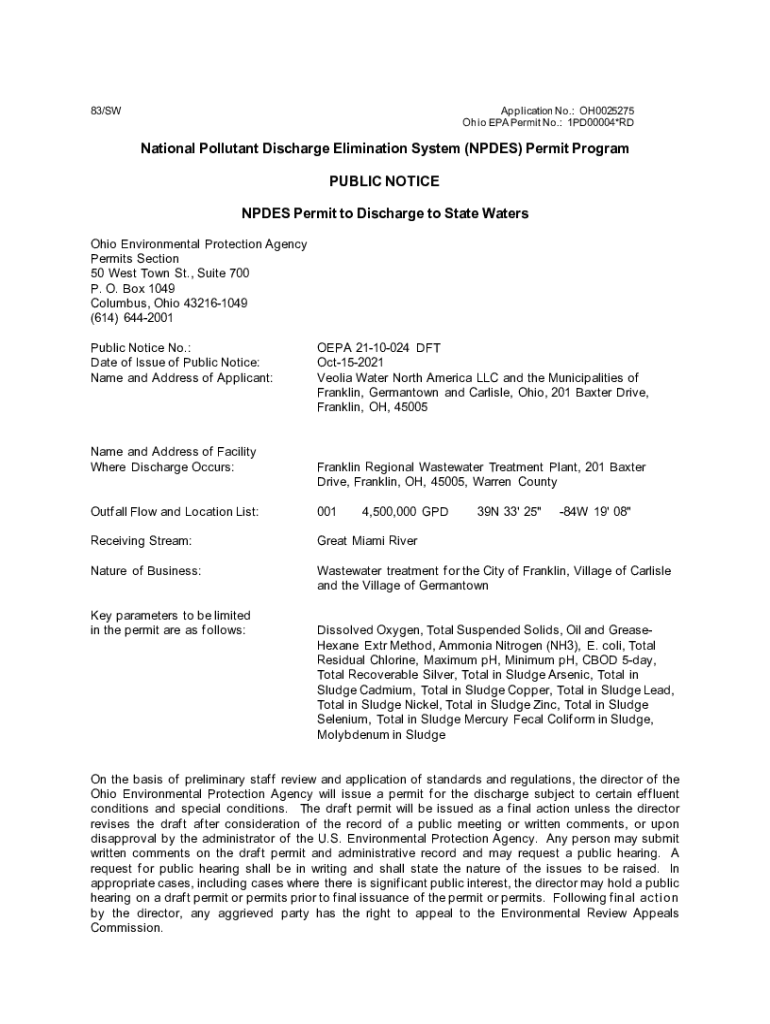 Get the free NPDES General PermitsOhio Environmental Protection ... - wwwapp epa ohio