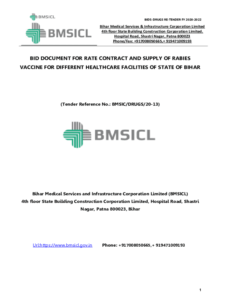 BIDSDRUGS PRETENDER FY 20202022Bihar Medical Services & Infrastructure Corporation Limited 4th floor State Building Construction Corporation Limited. Hospital Road, Shasta Nagar, Patna 800023 Phone/Fax: