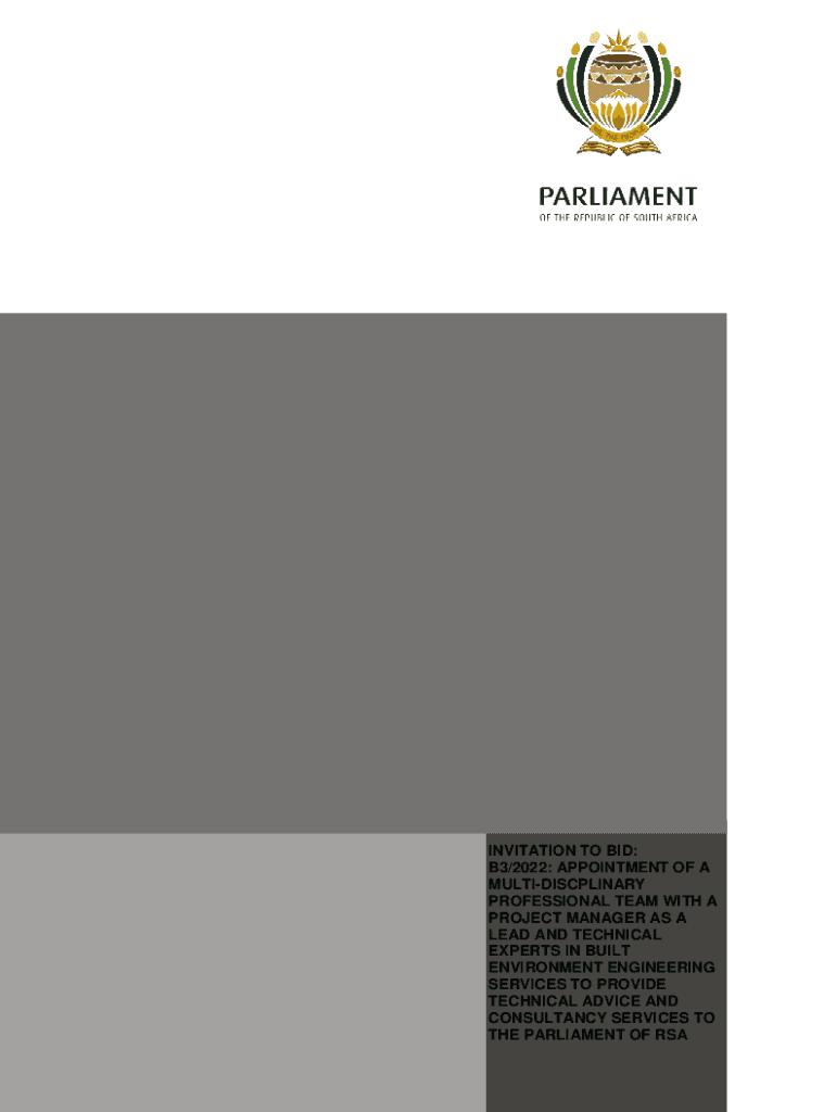 INVITATION TO BID: B3/2022: APPOINTMENT OF A MULTIDISCIPLINARY PROFESSIONAL TEAM WITH A PROJECT MANAGER AS A LEAD AND TECHNICAL EXPERTS IN BUILT ENVIRONMENT ENGINEERING SERVICES TO PROVIDE TECHNICAL
