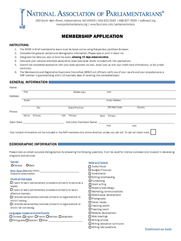 MEMBERSHIP APPLICATION INSTRUCTIONS: 1. 2. 3. 4. 5. 6. The ROAR In Brief membership exam must be taken online using Responds LockDown Browser. Complete the general contact and demographic information.