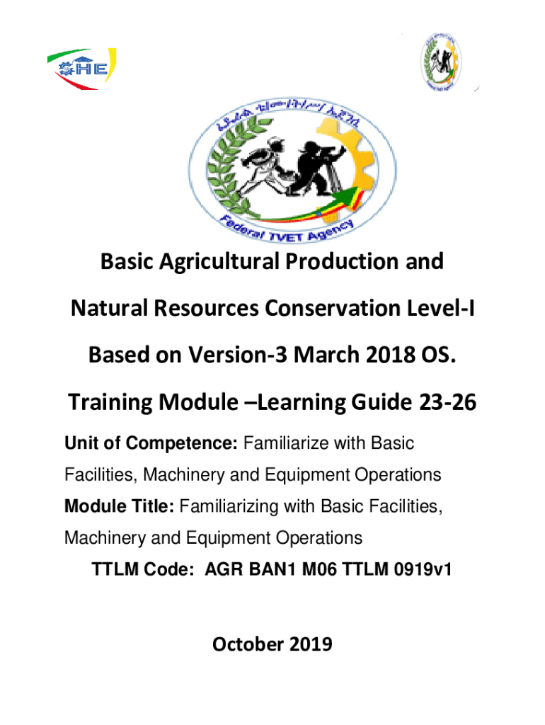 Basic Agricultural Production and Natural Resources Conservation Level Based on Version3 March 2018 OS. Training Module Learning Guide 2326 Unit of Competence: Familiarize with Basic Facilities, Machinery