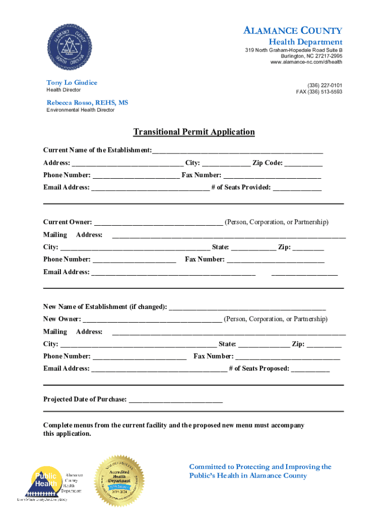 To fill out forms for the Alamance County Health Department in Burlington, individuals and businesses typically need to provide specific information related to their health practices.