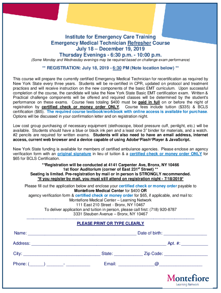 Get the free Emergency Medical Technician Refresher Course July 18 ...