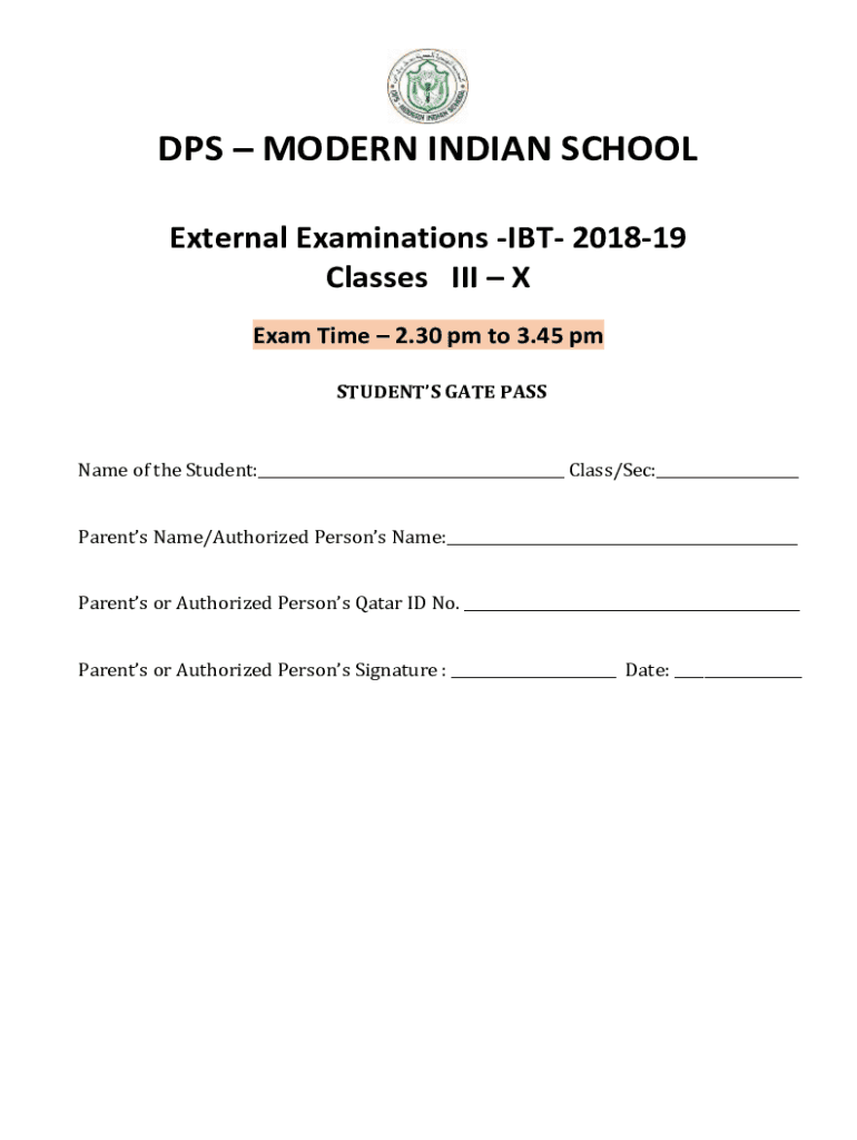 DPS MODERN INDIAN SCHOOL External Examinations IT 201819 Classes III X Exam Time 2.30 pm to 3.45 pm STUDENTS GATE Passage of the Student:___ Class/Sec:___ Parents Name/Authorized Persons Name:___