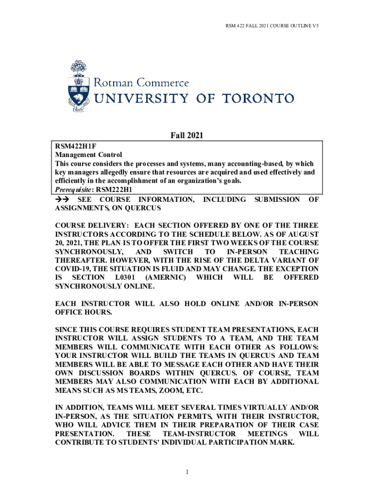 RSM 422 FALL 2021 COURSE OUTLINE V5Fall 2021RSM422H1F Management Control This course considers the processes and systems, many accounting based, by which key managers allegedly ensure that resources