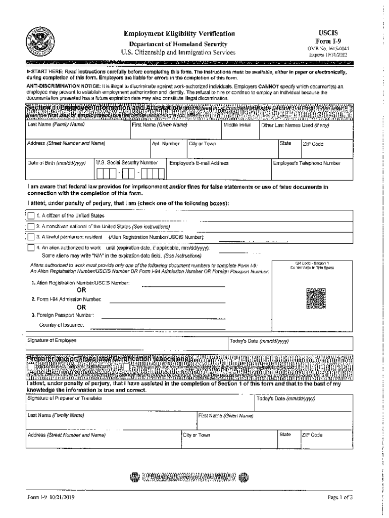 Form I-9 Employment Eligibility is needed by all employees hired in the United States to verify their identity and eligibility to work in the country.