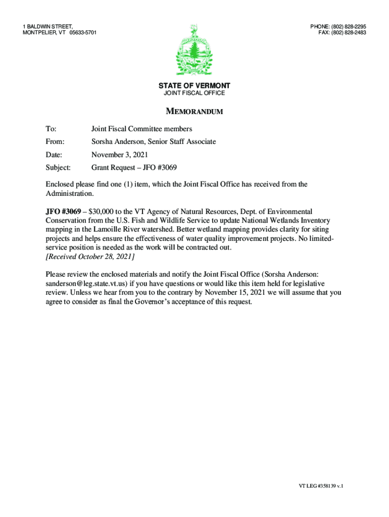 1 BALDWIN STREET, MONTPELIER, VT 056335701PHONE: (802) 8282295 FAX: (802) 8282483STATE OF VERMONT JOINT FISCAL OFFICEMEMORANDUM To:Joint Fiscal Committee membersFrom:Sasha Anderson, Senior Staff Associate