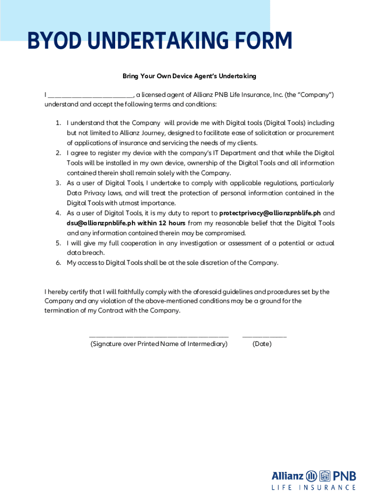 Get the free BYOD UNDERTAKING FORMAllianz PNB Life