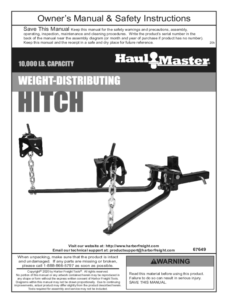 Owners Manual & Safety Instructions Save This Manual Keep this manual for the safety warnings and precautions, assembly, operating, inspection, maintenance and cleaning procedures. Write the products