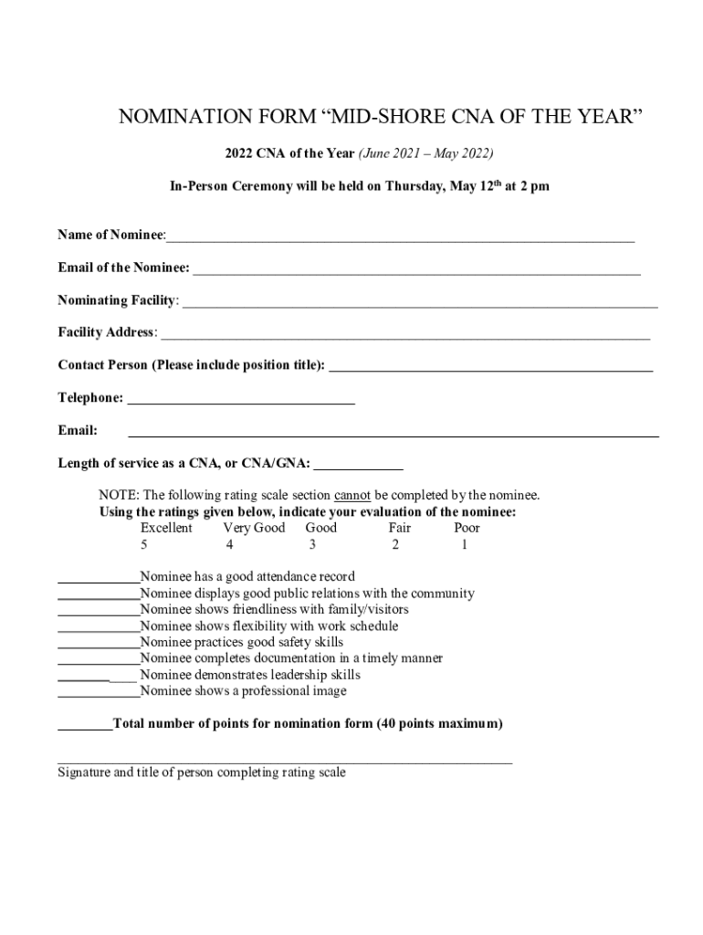 Get the free Nomination Form Mid-Shore CNA of the Year