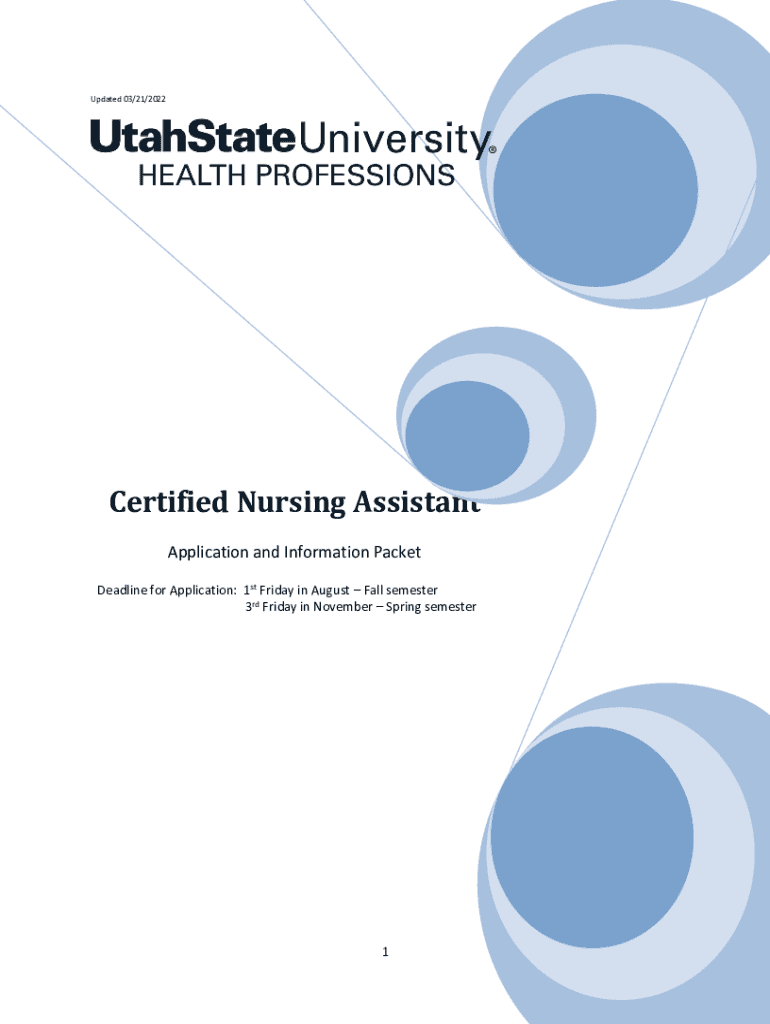 Updated 03/21/2022Certified Nursing Assistant Application and Information Packet Deadline for Application: 1st Friday in August Fall semester 3rd Friday in November Spring semester1Health Professions