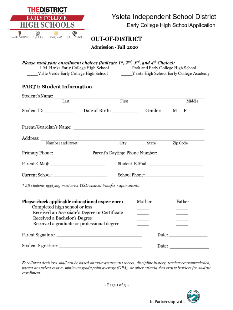 Early College High School ApplicationOUTOFDISTRICT