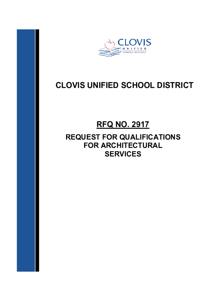 CLOVIS UNIFIED SCHOOL DISTRICT NO. 2917 REQUEST FOR QUALIFICATIONS FOR ARCHITECTURAL SERVICESCLOVIS UNIFIED SCHOOL DISTRICT RFQ NO. 2917 NOTICE OF REQUEST FOR QUALIFICATIONS FOR ARCHITECTURAL SERVICES